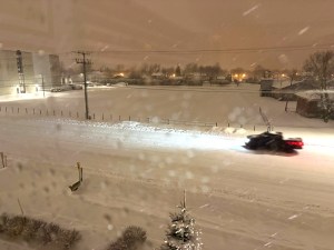 J’ai justement à sortir faire une course. Évidemment, je roule à une vitesse sécuritaire, me faisant doubler souvent. Pourtant, je ne lambine pas. La zone est de 50 km/h et l’idée de pousser l’accélérateur ne me tente pas du tout dans cette poudreuse à gros flocons, qui laisse un paysage féérique.