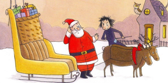 – Prenez votre hotte et suivez-moi, père Noël. Sinon je vous transforme en chauve-souris !
