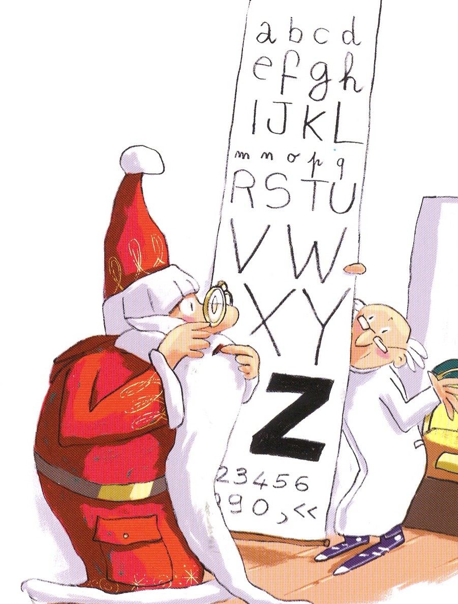 – Père Noël, vous n’êtes plus tout jeune et vous ne voyez plus aussi bien qu’avant, lui répondit l’oculiste. Rappelez-vous les deux dernières années, vous vous êtes perdus dans le ciel ! Certains enfants ont eu leurs cadeaux très en retard !