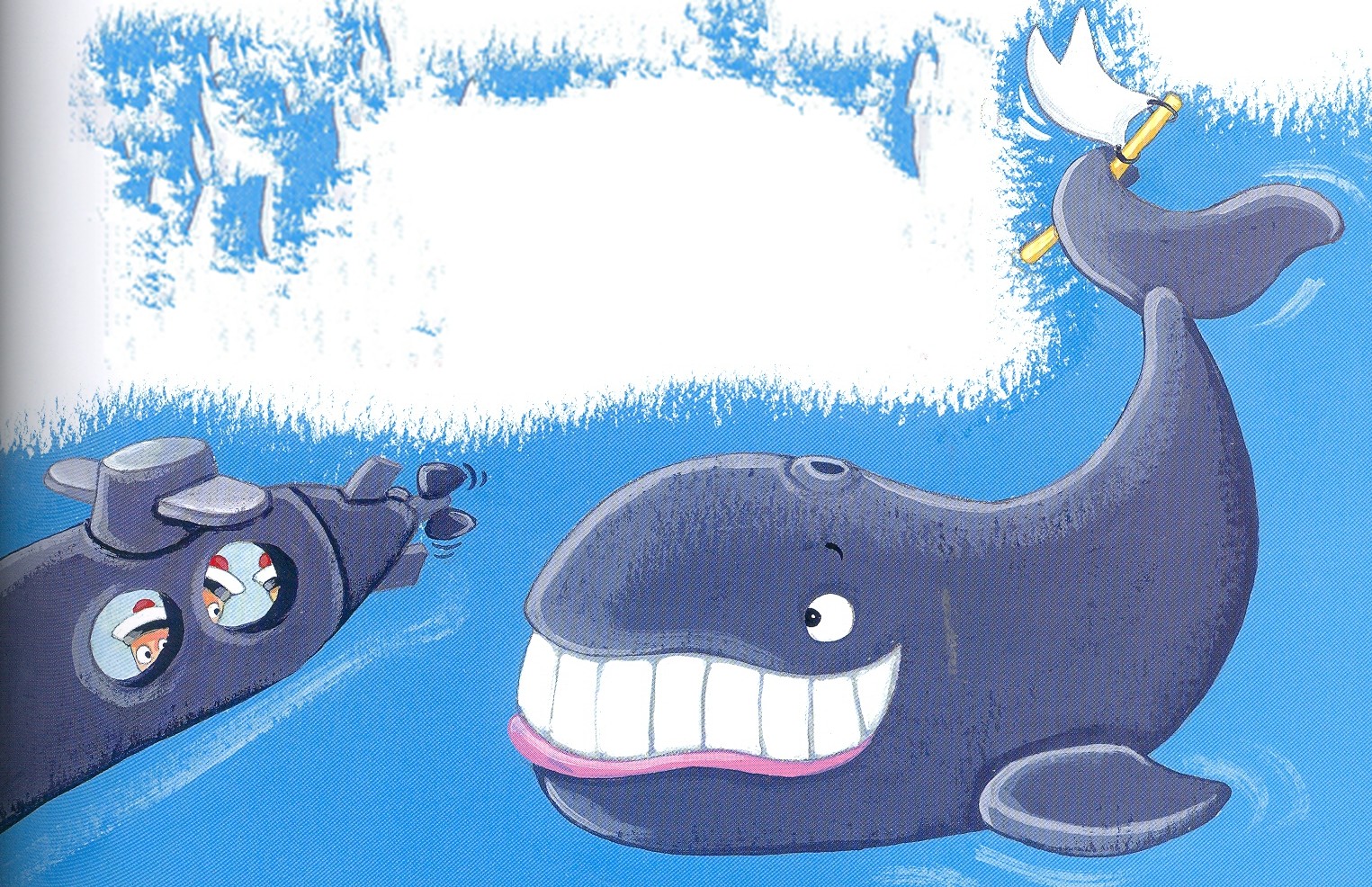 Les matelots se précipitèrent au hublot. L’animal géant se dirigeait vers le sous-marin. L’équipage songea à tirer. Mais la baleine avait accroché un drapeau blanc à sa queue pour prouver ses intentions pacifiques !