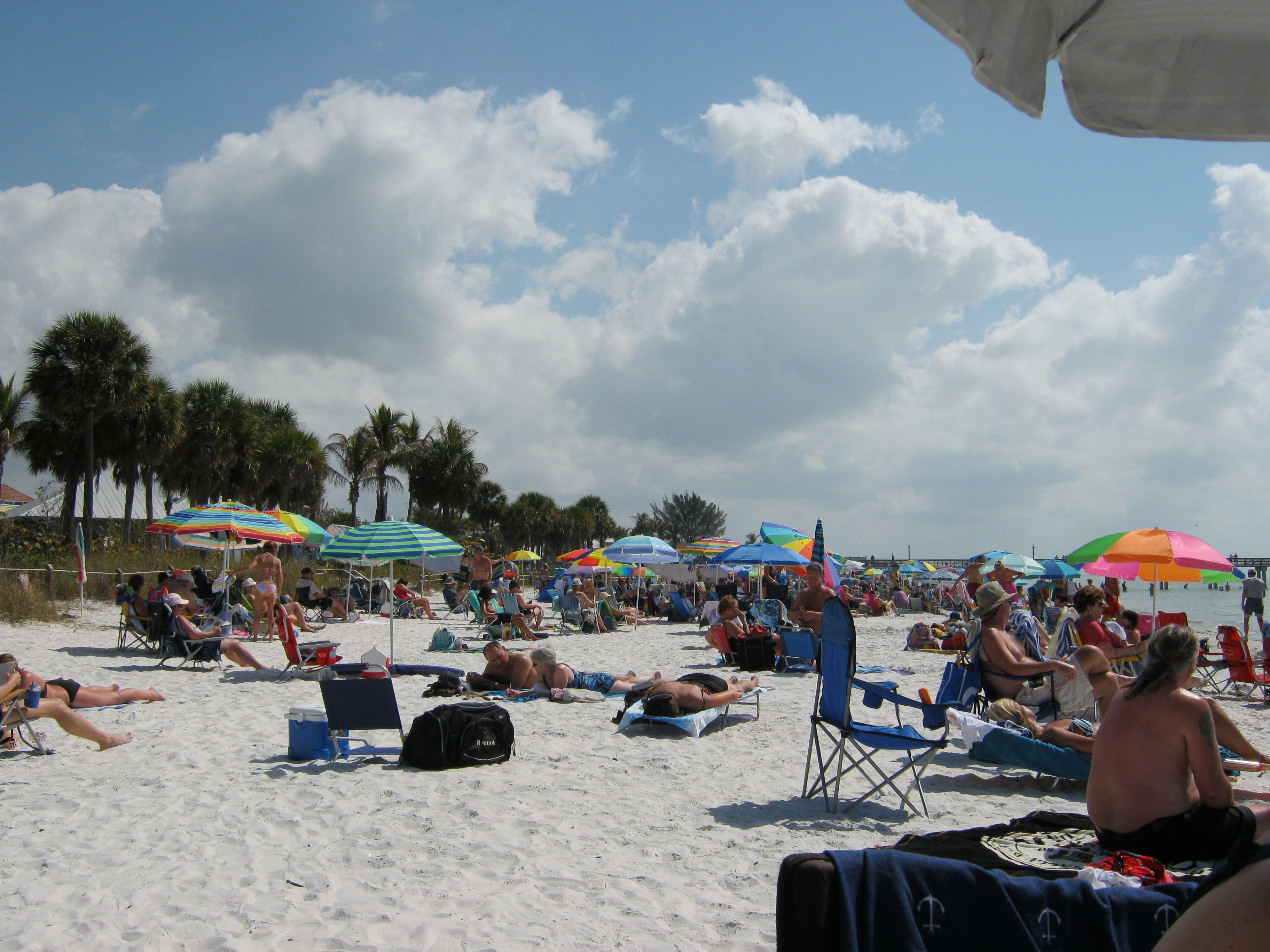 Hier, nous avons fait un saut à la plage de Fort Myers qui était bondée, comme à l’habitude. Arrivés tôt, avec notre lunch dans la glacière, on s’est installé sous le parasol, les deux pieds bien ancrés dans le sable frais, pour colorer notre carcasse nordique. Juste en face de nous, une maman et son bambin d’à peine deux ans, s’amusaient à jouer dans le sable. À côté, une autre maman et sa fillette, un tantinet plus vieille, venait aussi profiter des chauds rayons de soleil en ce début d’après midi. On les observait tout en pensant à nos petits enfants, surtout Audrey-Anne, parce que la fillette était une vraie tornade. Une boule d’énergie qui demande à elle seule, un gardien ou une gardienne avec des capacités athlétiques certaines. Ouf ! Ça en déplace du sables ces petites bombes.