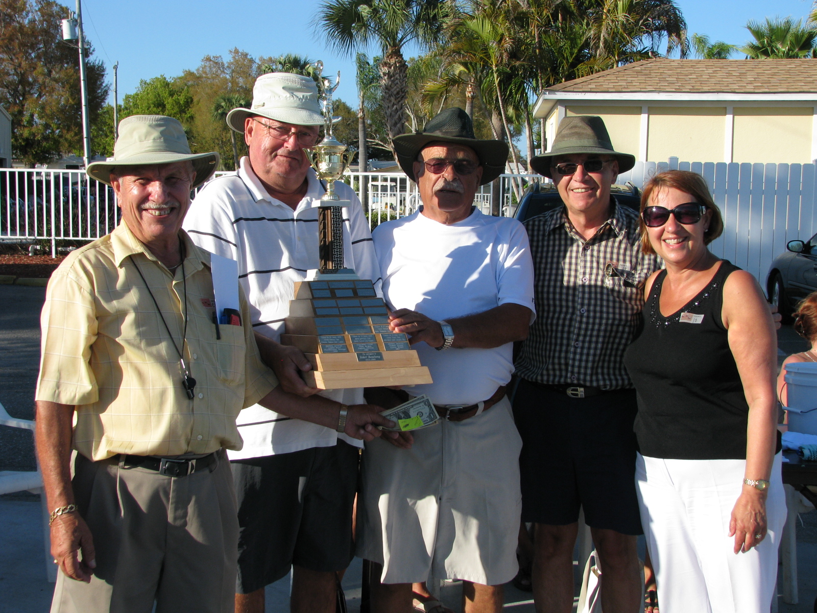 N’ayant pu participer au deuxième tournoi et photographier les lauréats, Charles m’avait demandé de le faire. Il faut dire que les reportages sont toujours bien suivis sur le blogue, par les québécois d’ici. Alors lors de ce deuxième tournoi, tenu le 9 février dernier, deux équipes ont terminé ex-aequo en deuxième position; Celle de Réal Chagnon, Ginette Caissy et Gerry Vachon, de même que la formation de Joël Durand, Isabelle Bélanger et Michel Lizotte. Les gagnants n’étant pas sur place pour la photo d’usage, elle sera prise ultérieurement et ajoutée à l’album.