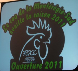 Le comité organisateur a aussi innové, en élaborant le thème du rassemblement; Le coq de la Montérégie-Sud éveille la saison 2011. La mascotte Cocorico apportait cette touche sympathique accompagné du castor de la FQCC qui se cherche un nom. Ensemble, ils ont ravi le cœur des enfants, petits et grands. Mais la surprise du rassemblement a certes été la chanson Cocorico et son clip vidéo qui, à tous les jours, créait cette ambiance festive et nous amenait à bouger. Vous auriez dû voir les sourires que ça provoquait. C’était tellement accrocheur, que je l’ai encore dans la tête depuis vendredi. Dès notre retour à la maison, je me suis empressé de la trouver sur YouTube. Voici d’ailleurs le lien pour la visionner. Vous verrez, ça vous énergise…