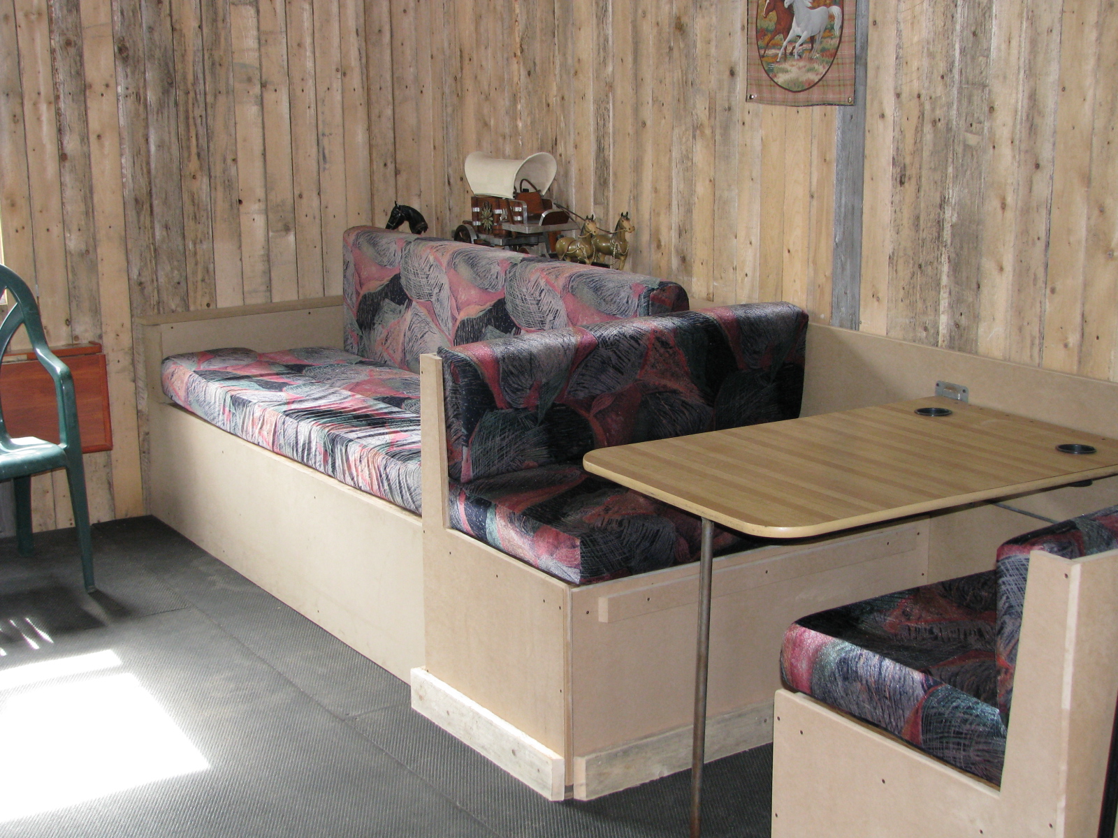 Mais de notre côté, la sagesse aidant et contrôlant nos ardeurs, nous nous sommes dirigés vers le Ranch Kaymas pour donner un coup de main à la fabrication du mobilier, conçu par Lise et Sylvain. Entre les périodes d’abondantes averses et, par conséquent, un taux d’humidité assez élevé, le travail allait bon train. Je dois dire que le travail est très bien réussi et donne un beau cachet au décor. Pour des amateurs, nous sommes pas mal fiers du résultat. Ce n’est qu’un début et les semaines à venir seront consacrées à compléter l’aménagement pour que ce soit fonctionnel avec les appareils de cuisine et de chauffage alimentés au propane.