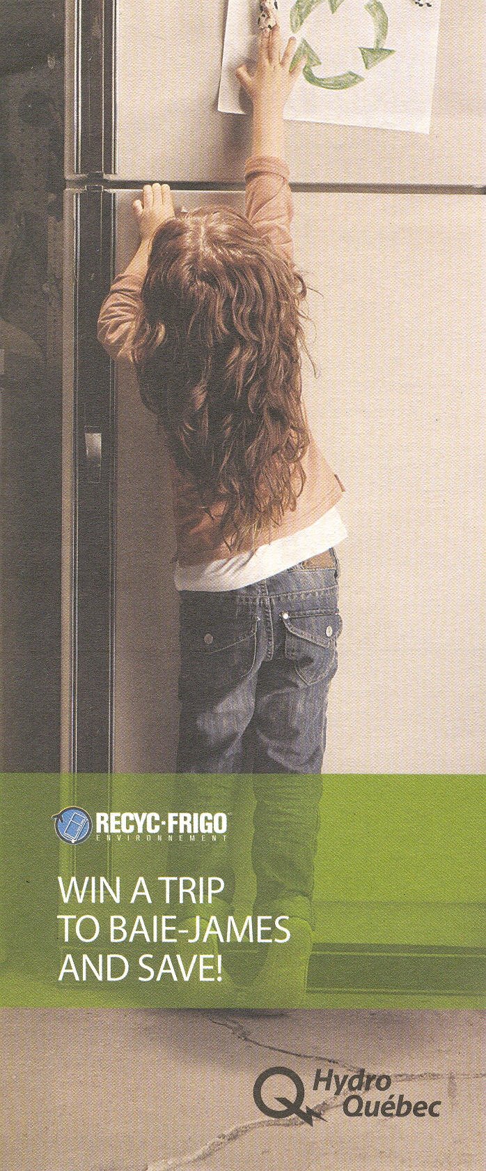 Hier, en prenant connaissance de mon courrier, je remarque une enveloppe adressée à mon nom, d’Hydro Québec. Je m’empresse de l’ouvrir et j’y trouve une carte, recto-verso, unilingue anglophone, sur leur programme « Recyc-Frigo » pour le recyclage des vieux réfrigérateurs.