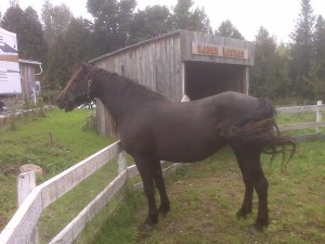La nouvelle coqueluche du Ranch Kaymas est déjà bien en selle dans ses nouveaux quartiers mais je dois vous avouer que son périple pour en arriver là ne fut pas de tout repos pour nous. Parti avec une remorque sans pneu de rechange et dont les pneus laissaient à désirer, nous avons quand même quitté Waterloo en milieu de matinée, jeudi, pour allez quérir la belle canadienne noire de douze ans.