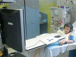Grâce à l’initiative de son professeur et d’un technicien en dialyse de l’hôpital, un téléviseur est branché à une webcam et un micro, et il assiste à ces cours en direct. Il peut même intervenir et poser des questions. C’est une première au Québec et espérons que l’idée fera boule de neige.