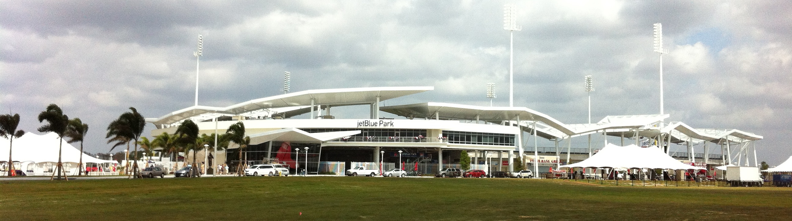 Ce matin, nous sommes allés visiter les nouvelles installations des Red Sox de Boston, ici à Fort Myers. Anciennement, ils occupaient le stade municipal en plein cœur de la Ville et, depuis le début du présent camp d’entraînement, étrennent leur tout nouveau stade, le jetBlue Park. Situé à proximité de l’aéroport international South West Florida, ils bénéficient d’un stade ultra moderne qu’on a eu plaisir à admirer, Pascal, Louise et moi. Ça nous rappelait étrangement nos défunts Expos. On nous dit que les billets pour les parties d’exhibitions s’envolent comme des petits pains chauds. Ici, les Red Sox sont comme une tradition. L’équivalent du Canadien, à Montréal. J’ai rapporté une casquette souvenir.