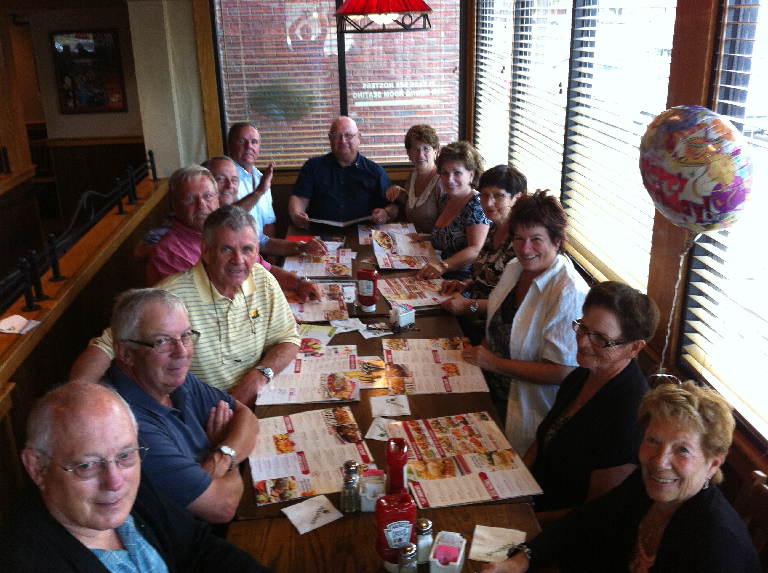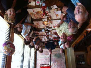 Mais nous sommes encore ici et on n’a pas beaucoup de difficulté à se tenir occupé entre les bonnes frettes et quelques coupes de vin. Certains snowbirds, dont notre gaspésienne Roseline ont l’avantage de fêter leurs anniversaires aux pays des gougounes et justement, ce vendredi, nous nous sommes retrouvés avec treize autres convives à célébrer l’événement au Applebee’s du coin, où le sympathique serveur Fluffy nous attendait, avec sa bonne humeur contagieuse. Jacques et Claude, nouvellement arrivés ici, étaient également du nombre. Quel âge a cette chère Roseline? Chut! On ne demande pas ça à une dame voyons. Elle a l’âge de son cœur et croyez-moi, elle est encore en excellente forme.