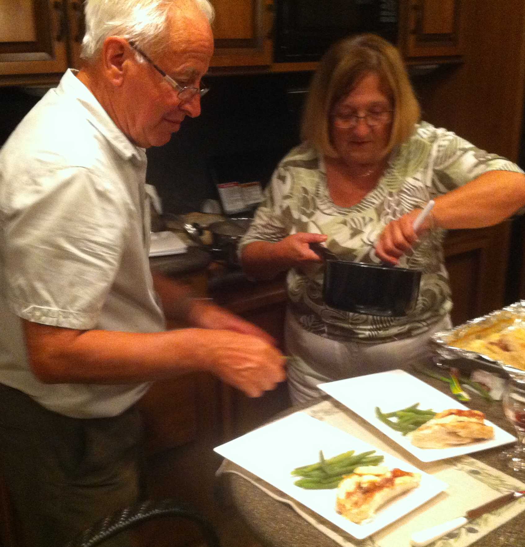 autres Carole) et Marcel nous recevaient autour d’un délicieux repas préparé avec amour pour les amis Francine et Jean-Guy ainsi que Lise et Gilles. Pendant l’apéro pris à l’extérieur, la fraîcheur de la nuit nous a quelque peu forcé à rentrer dans la caravane pour la suite des choses. Comme ils sont bien équipés en VR, Marcel a allumé le foyer pour que nous soyons bien installés confortablement pour le souper. Stylés comme les participants de Ça Va Chauffer, le moment fort fut le dessert qui révélait une sublime et originale tarte au Corn Flakes, dont ils devront nous refiler la recette.