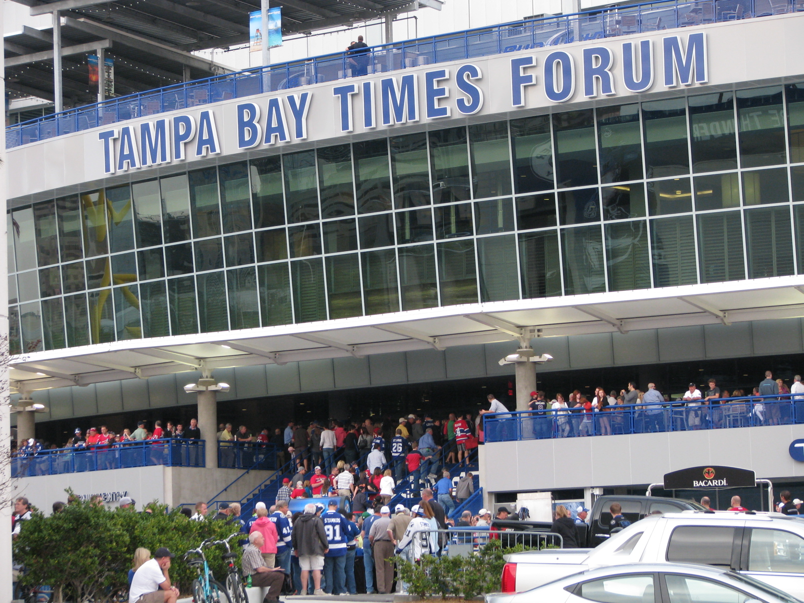 Samedi, c’était la journée des mecs, une bonne vingtaine, et de Johanne ! Un double pèlerinage au pays des belles filles et des amateurs de hockey. Pendant que nos conjointes couraient les magasins et restaurants pour remplir leurs cartes de crédit, nous prenions le chemin de Tampa Bay, où le Canadien se mesurait au Lightning de l’endroit en soirée. Mais avant d’admirer nos Glorieux, la tradition est de bouffer quelques ailes de poulet accompagnées de pichets de bière bien froide au Hooters du coin. Non pas que les ailes soient si exceptionnelles mais les filles… Si le bon Dieu a fait quelque chose de mieux, il a sûrement garder ça pour lui. Alors pour le plaisir des yeux et de nos papilles gustatives, on a passé trois bonnes heures à reluquer les beautés comme des collégiens, les doigts gommés, tout en restant bien sages, comme en témoignaient nos cheveux grisonnants. Louiselle peut être très fière de son homme qui, preuve photographique à l’appui, a laissé ses mains bien en évidence sur la table, au moment d’immortaliser quelques clichés avec les belles.