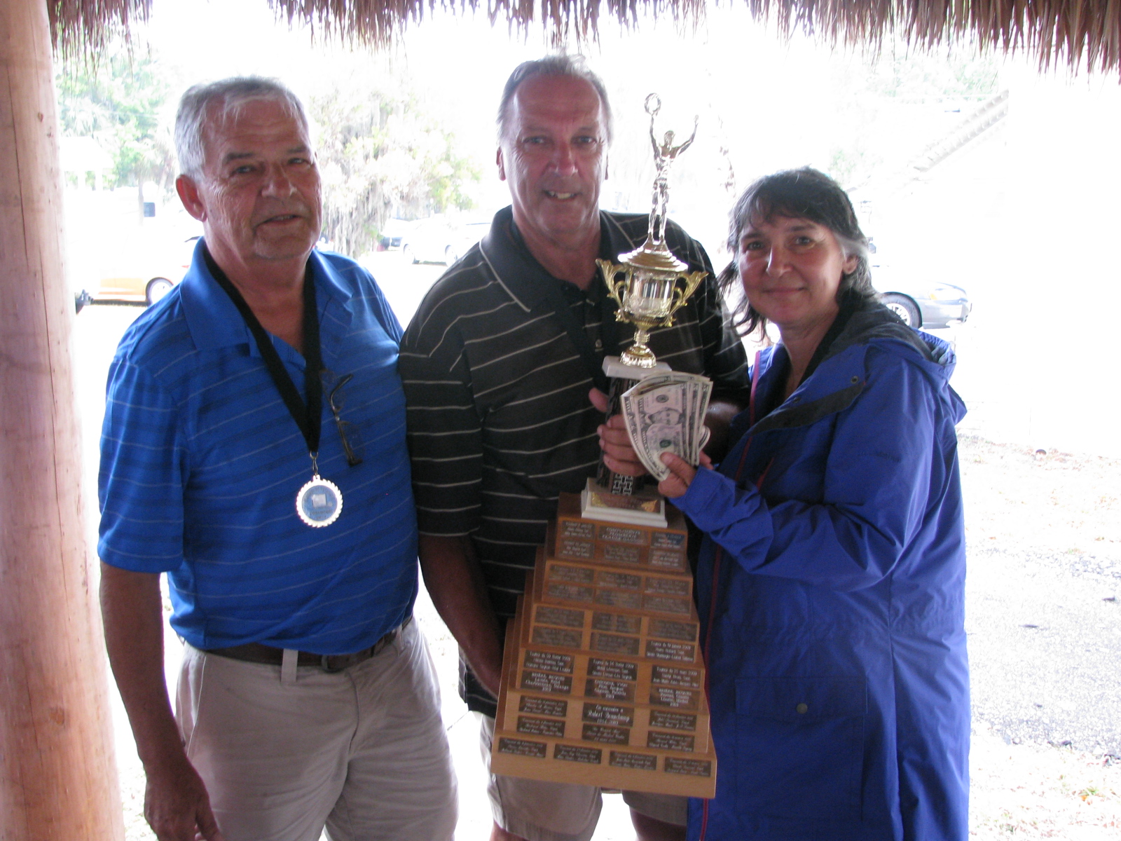 Devant les caprices de la météo, la remise des prix de même que le souper aux hotdogs, se sont déroulés exceptionnellement sous le tiki, agrandi pour l’occasion de quelques abris de fortune. Nous étions un peu plus à l’étroit mais disons que l’ambiance était plus que chaleureuse dans cette humidité. Comme toujours l’organisation était à la hauteur et c’est avec le sourire et la bonne humeur que le rideau tombait sur une autre belle saison de pétanque sur les allées sablonneuses de Pioneer Village. Pour les curieux, vous trouverez les images des tournois de cette saison, dans l’album photos Floride – Hiver 2012-2013 en marge droite du blogue.