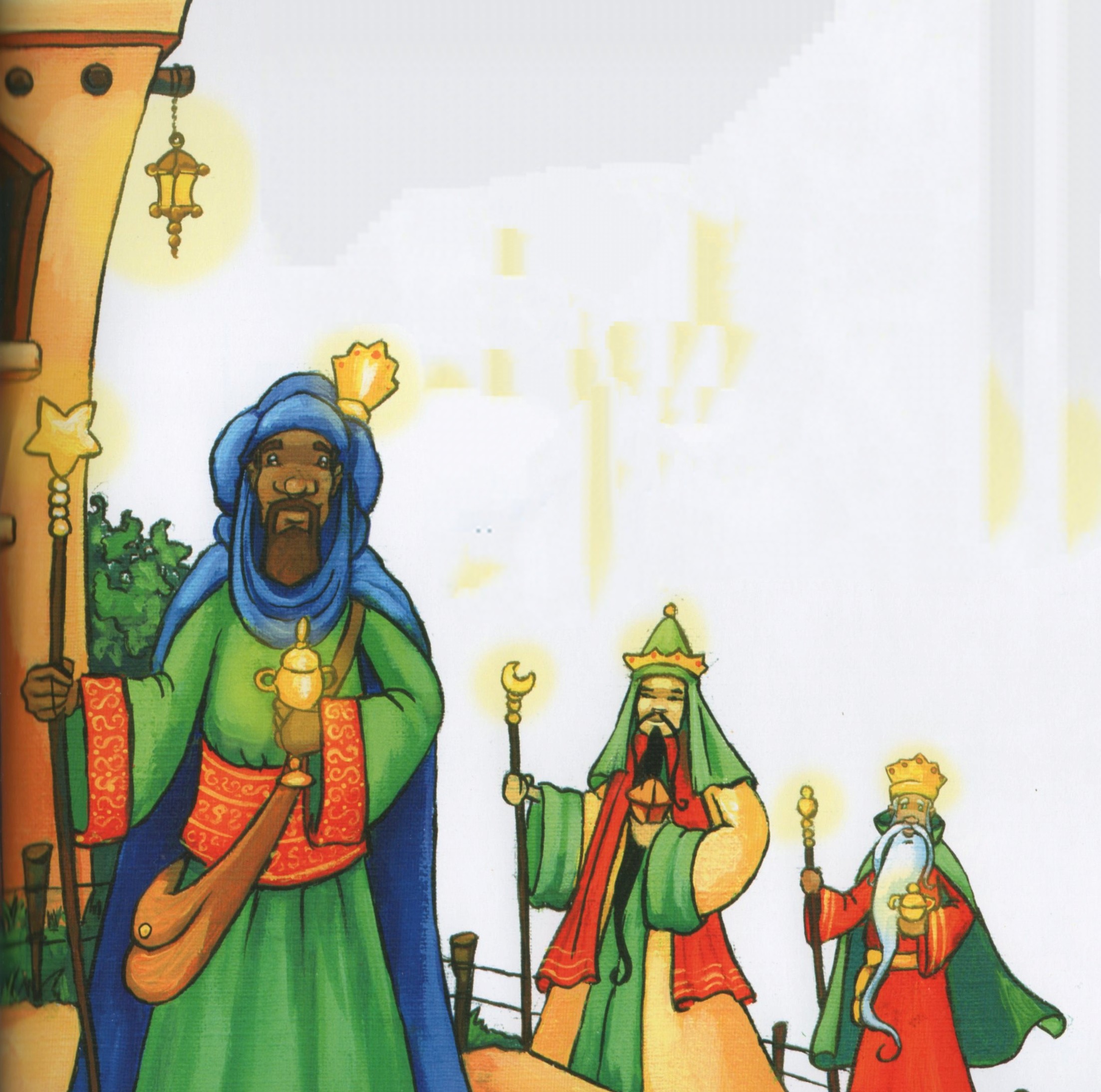 La veille de Noël, alors que les habitants de Solomé s’apprêtent à se coucher, trois étranges personnages entrent dans le village. Le premier vient du Sud. Très grand, avec la peau noire comme le charbon, il ressemble aux hommes de Solomé, mais son costume coloré indique qu’il n’est pas d’ici. À peine entré dans le village, il frappe à la porte de la première cabane et demande à y passer la nuit.