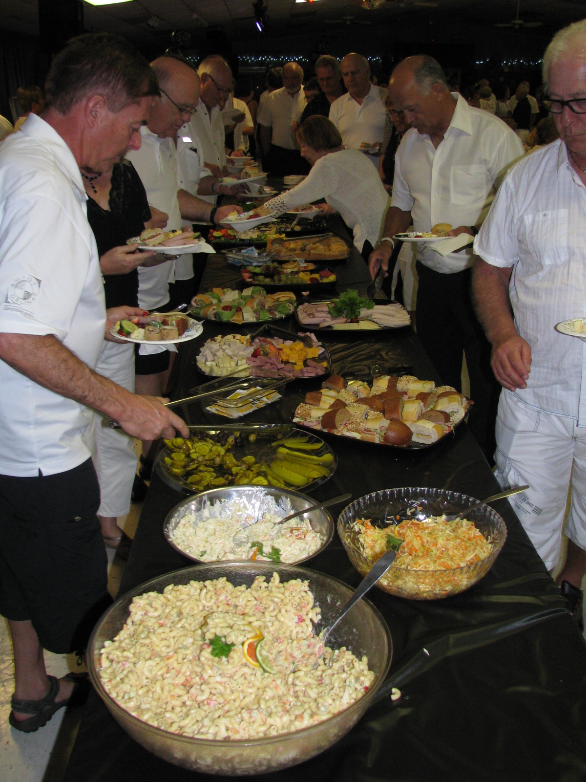 Pour le volet musical, Francine a eu la main heureuse avec le groupe choisi, Big Night Out. Un orchestre floridien de 6 musiciens, mêlant guitares, percussions et cuivres dans des rythmes latin, disco, soul et Motown au grand plaisir des nombreux danseurs. À entendre les applaudissements nourris, ils ont définitivement livré la marchandise avec une prestation endiablée, jusqu’à 23 heures. Entretemps, durant l’entracte, un délicieux buffet offrant une variété de bouchées, salades, viandes froides, canapés et desserts était étalé pour sustenter les invités. Et, tenez-vous bien, toute cette soirée pour 10$! L’aubaine du siècle! À entendre les commentaires élogieux durant la soirée, ce fut une soirée des plus réussie.