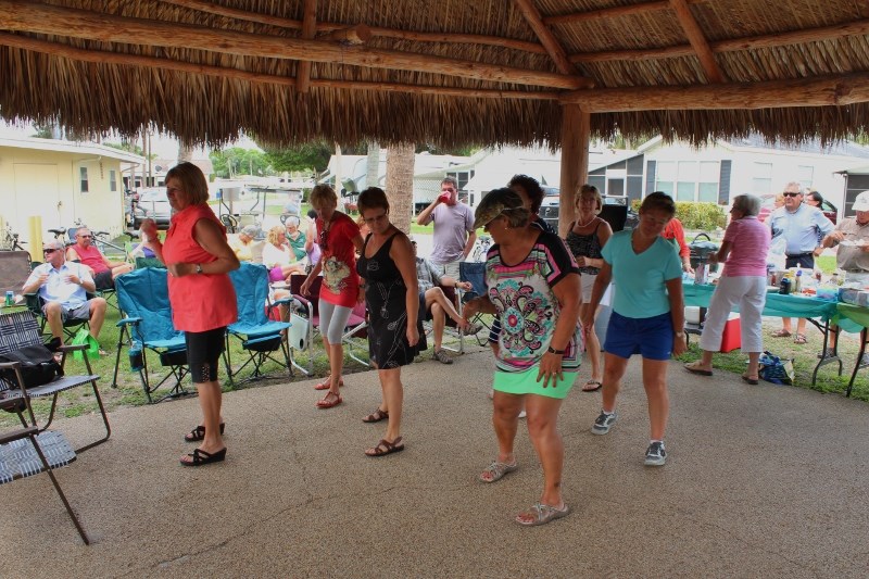 Durant deux heures et demie, sous le tiki, nous avons défilés nos pièces au grand plaisir des danseurs qui, pour l’occasion, avaient ça dans les jambes. Danse de ligne, rock, tout y était et nous pouvons dire mission accomplie. Les commentaires reçus étaient assez révélateurs de l’appréciation des spectateurs. D’autres campeurs se sont joints au groupe pour assister au spectacle.