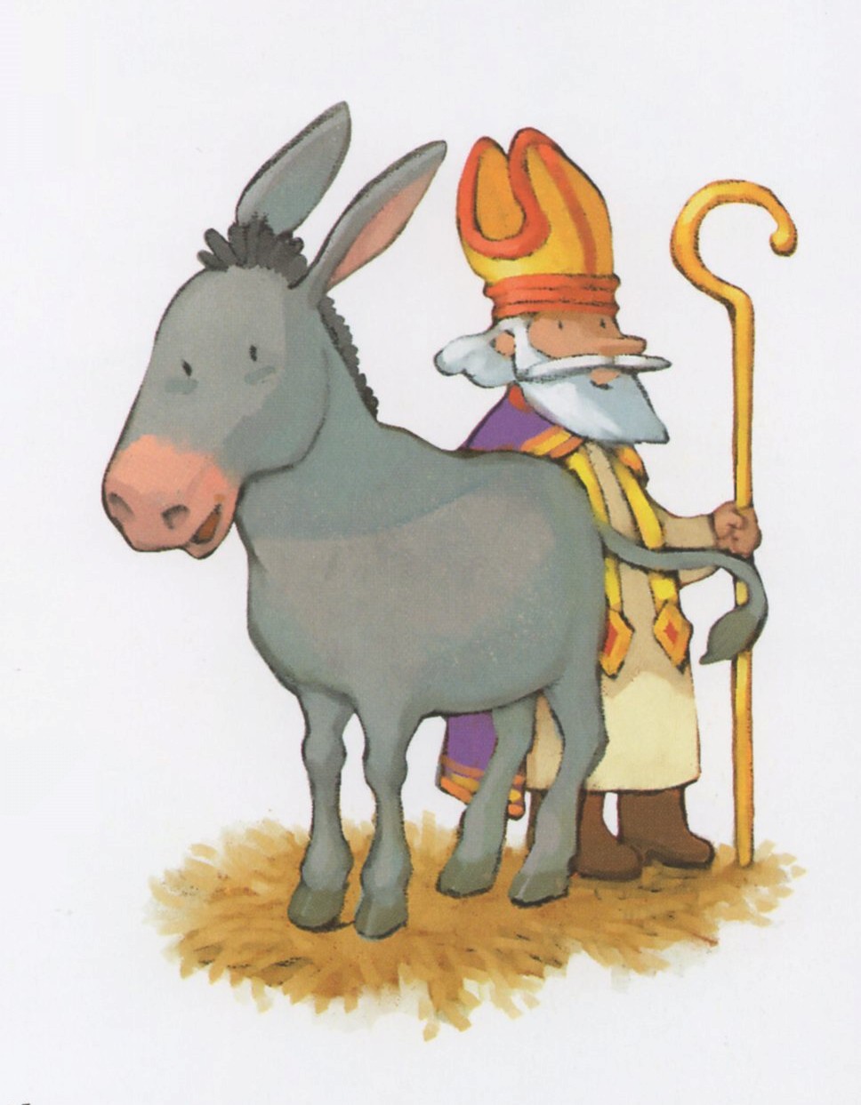 « Bonjour, je suis Picotin, l’âne de saint Nicolas! C’est moi qui le porte sur mon dos quand il vient visiter les maisons, au mois de décembre. Alors, imaginez toutes les aventures qui me sont arrivées, avec un maître pareil… Tenez, je me souviens d’une histoire incroyable : Claudion, Philippe et Simon étaient les fils d’un brave bûcheron. De très gentils enfants.