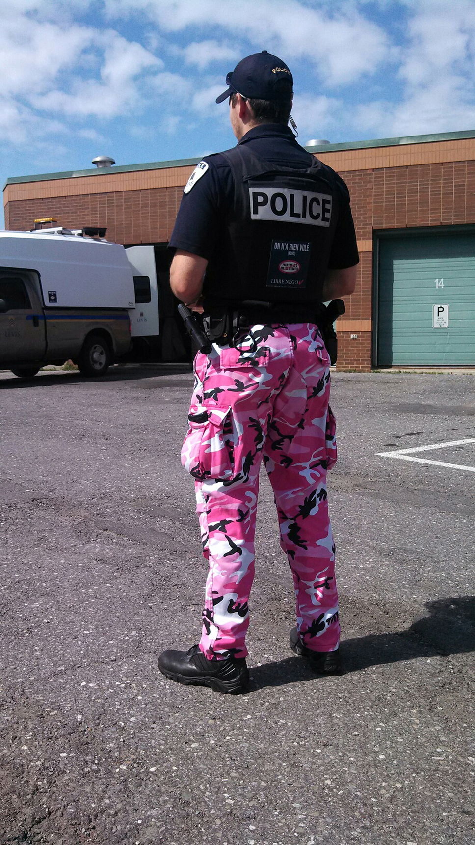 Sinon, on aurait eu trois victimes sur la conscience ; le contrevenant, son père et Madame la Juge. Ce sont probablement les trois seules personnes au Québec, qui ne sont pas au courant que les policiers portent des pantalons de camouflage, dont plusieurs de couleur rose, plus facile à repérer. Et vous chers lecteurs et lectrices, le saviez-vous ? Je fais bien sûr référence à cette histoire d’une contravention de 1 293$ qu’un contrevenant s’est vu imposer pour avoir mis en danger la vie d’une policière qui voulait l’arrêter, et qu’une magistrate, dans sa grande sagesse et avec une profonde analyse, a acquitté.