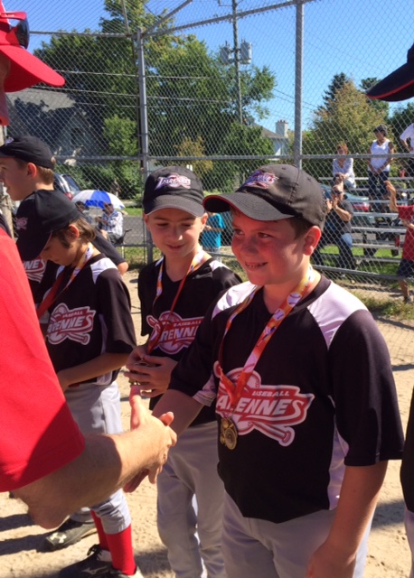 Par une belle matinée ensoleillée, propice au baseball, notre petit-fils Pierre-Olivier grand de ses douze ans et son équipe les Voltigeurs de Varennes, catégorie Pee-Wee A, disputaient la grande finale de la Coupe Labelle au parc de la Commune de Chambly, hier. Un merveilleux parc multidisciplinaire où la communauté peut s’adonner à toutes sortes d’activités sportives dans ce pittoresque et historique secteur du vieux fort de Chambly.