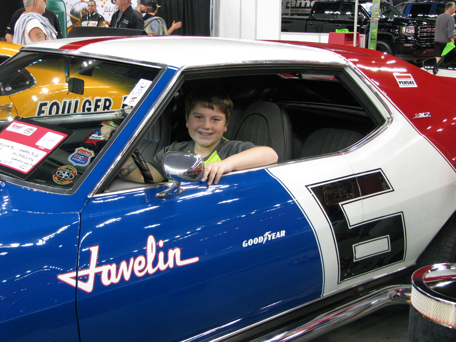 Autre coïncidence, le propriétaire de cette Javelin AMX, se nommait également Nantel. Alors là, devant mon excitation et mon enthousiasme, la charmante dame du kiosque me proposa de faire une photo avec mon petit-fils au volant. Elle n’a pas eu à le répéter deux fois. Pierre-Olivier, tout sourire a pris une pose tout à fait naturelle et symbolique. C’est la photo que vous pouvez admirer au début de l’article.