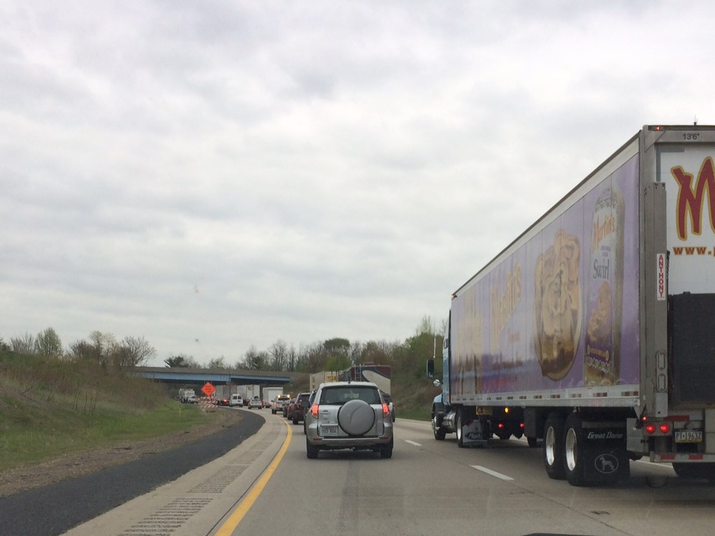 Un bouchon de circulation. Vous voyez bien que ça ne bouge pas!