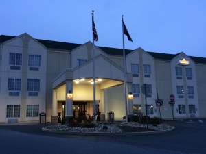 C’est comme la chanson… plus haut sur la carte et plus loin en roulant, pour faire une analogie. Nous voici rendus à Fogelsville en Pennsylvanie (près d’Allentown), pour notre deuxième nuit, depuis 19h00, avec 1 032 kilomètres de plus à l’odomètre de la bagnole. On voulait réserver au Comfort Inn qu’on connaît déjà, mais même si le stationnement était plein à 15%, la concierge m’affirmait que les chambres étaient sold out. Mettons qu’elle a laissé un doute dans mon esprit. Peut-être que mes culottes courtes ont joué dans la balance… elle m’a pris pour un énergumène probablement. Quoi qu’il en soit, on a choisi le Hawthorn Suites à deux pâtés de là. Température; 13°C et les vêtements longs seront de mise demain matin.