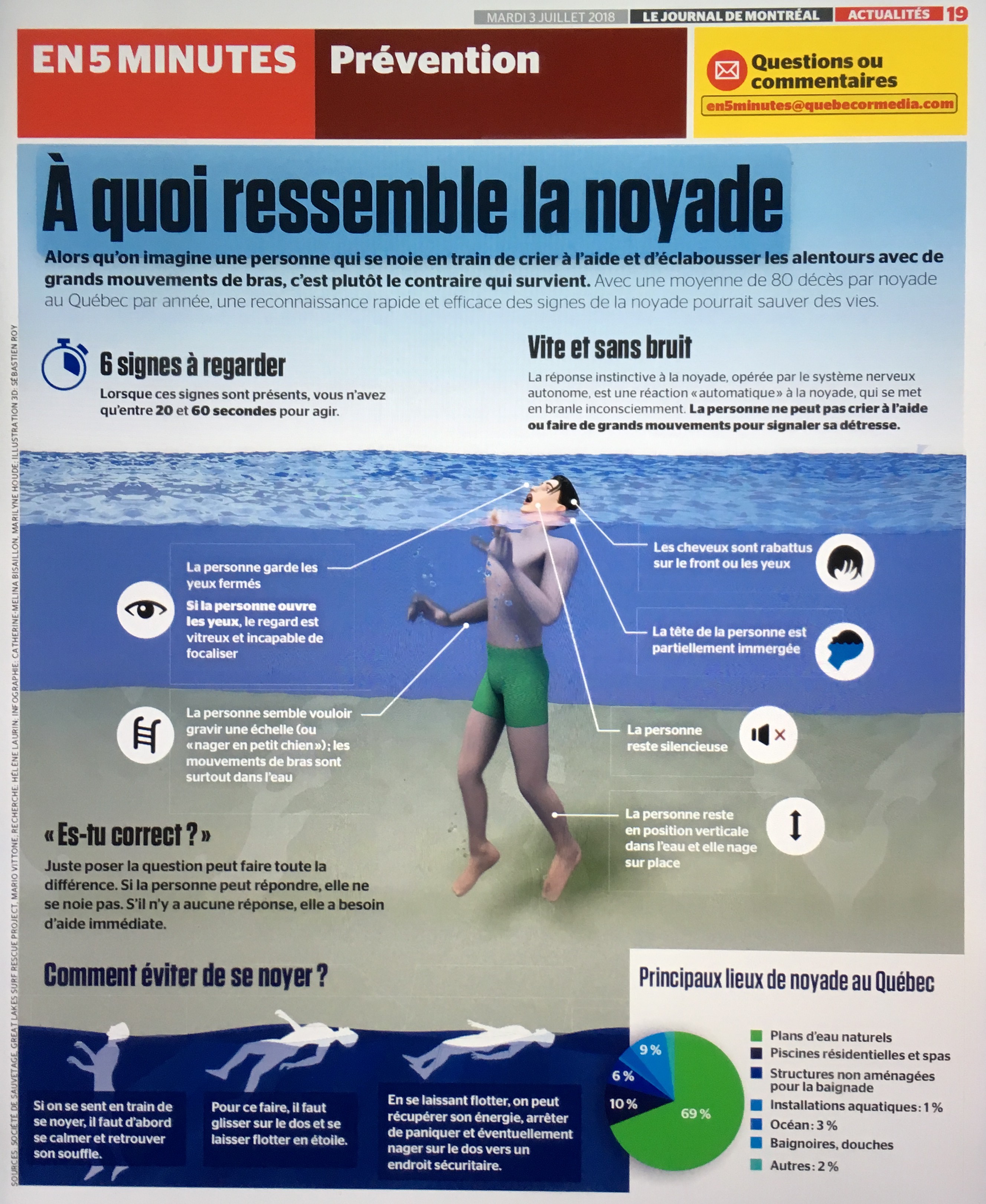 S’y préparer ou savoir quoi faire, c’est déjà un pas dans la bonne direction. En ces temps de canicule, il faut redoubler de prudence sur les plans d’eau. Cette illustration peut vous sauver la vie.
