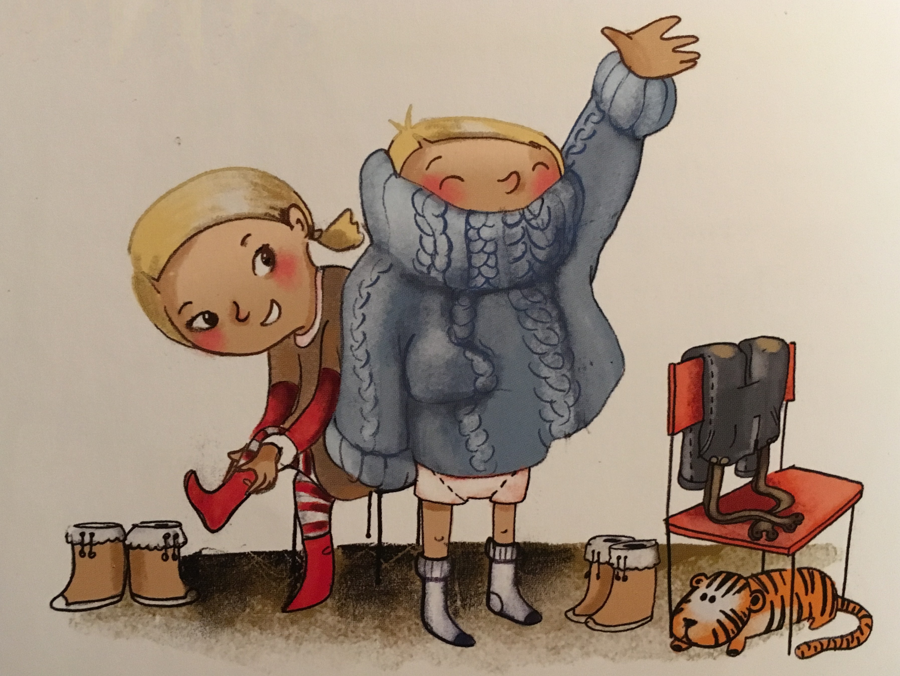 Robin le montre à Luce, inquiet. Mais papa leur explique qu’il ne faut pas se faire de souci, que les oiseaux qui n’aiment pas le froid partent pour les pays chauds. Ceux qui restent sont bien protégés par leur plumage qui s’épaissit dès la fin de l’automne.