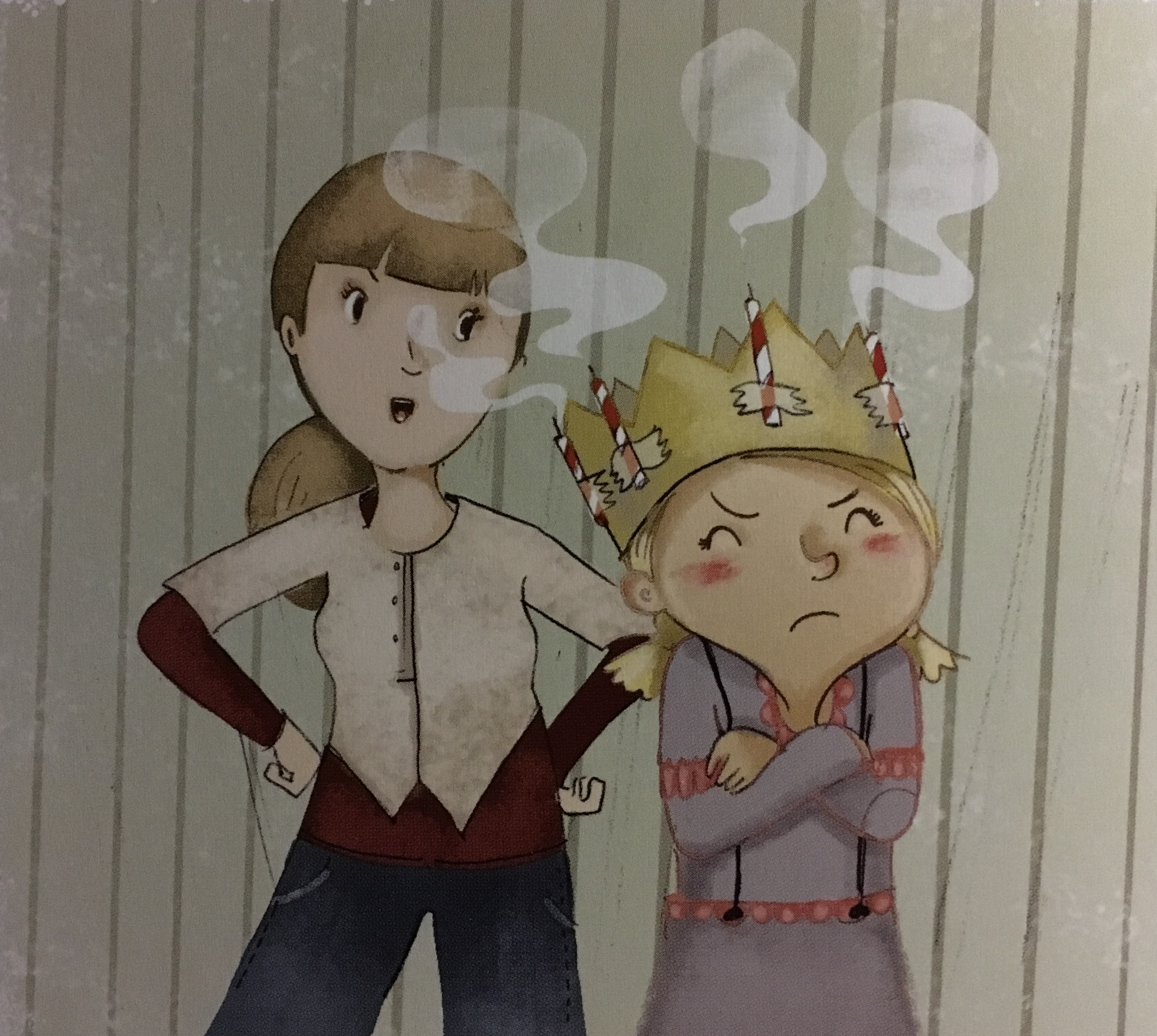 – Mais maman, la maîtresse nous a expliqué qu’aujourd’hui, c’est la Sainte-Lucie, la fête de la lumière. Dans les pays du Nord, la plus jeune fille de la maison porte une couronne comme celle-ci, avec des bougies allumées dessus !