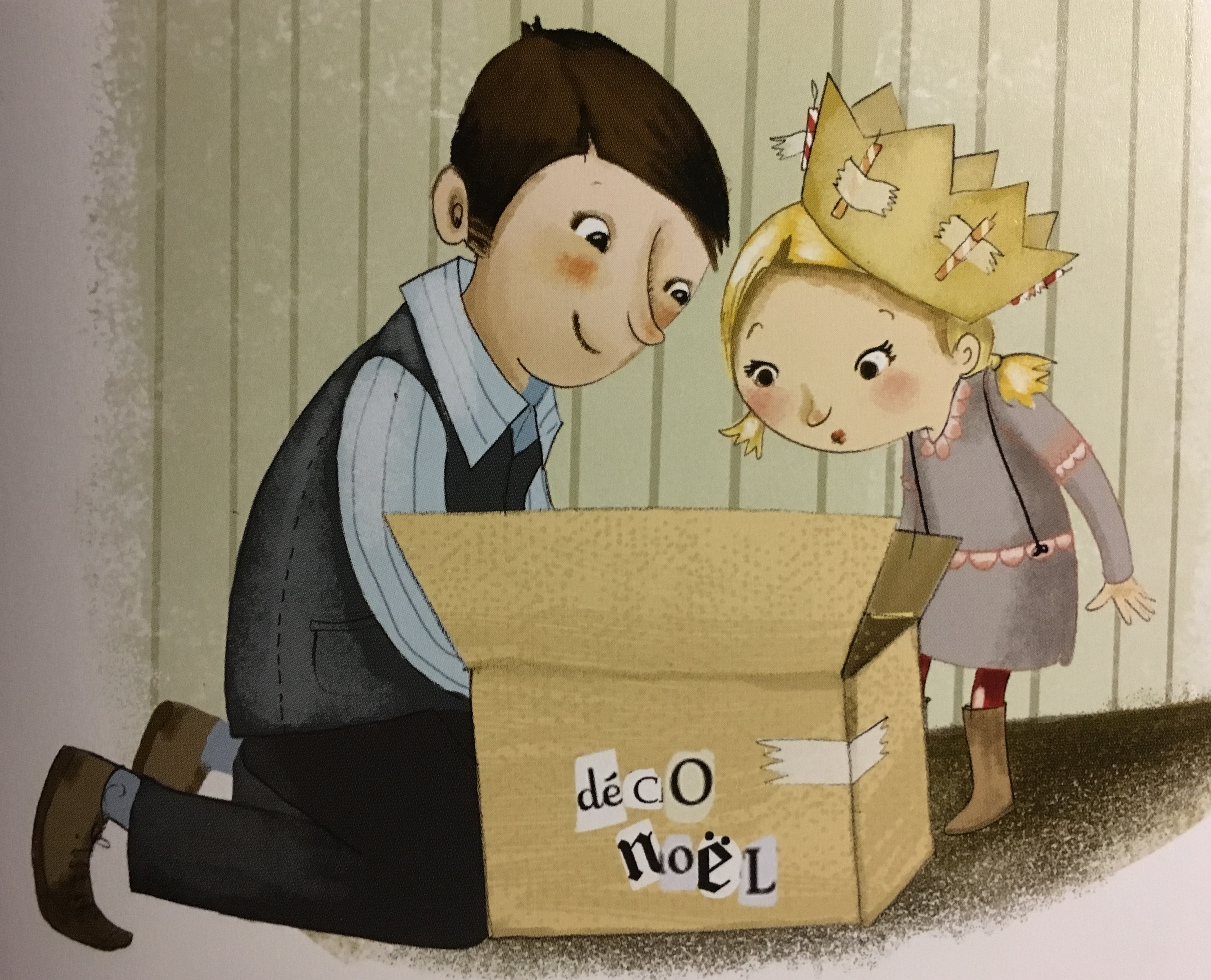 Au bout de cinq minutes, il fait un clin d’œil à sa femme et, sans rien dire, va chercher un grand carton repli de décorations de Noël.