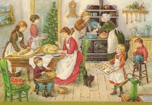 Tout commençait début décembre avec l’abattage de quelques animaux de la ferme familiale par les hommes. On faisait ainsi des provisions de viande pour l’hiver et pour les repas du temps des Fêtes, bien sûr ! Ensuite, les femmes pouvaient entreprendre le grand ménage de la maison et cuisiner les rôtis, tourtières, cretons, tartes, gâteaux et tout ce qu’il fallait pour bien recevoir la visite. « Durant leurs moments de répit, le soir, les femmes tricotaient des vêtements ou faisaient de la broderie tandis que les hommes fabriquaient des jouets en bois. C’étaient leurs cadeaux aux enfants. Ils n’achetaient pratiquement rien dans les magasins », poursuit-elle.