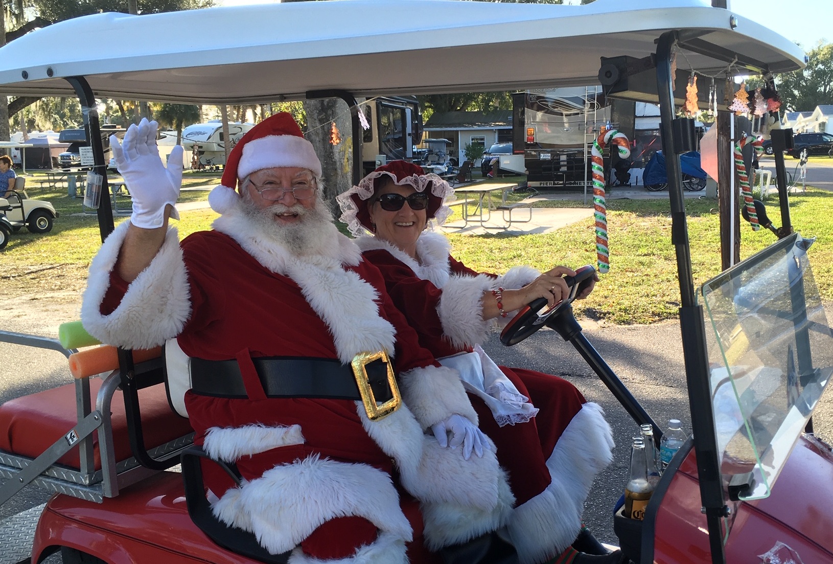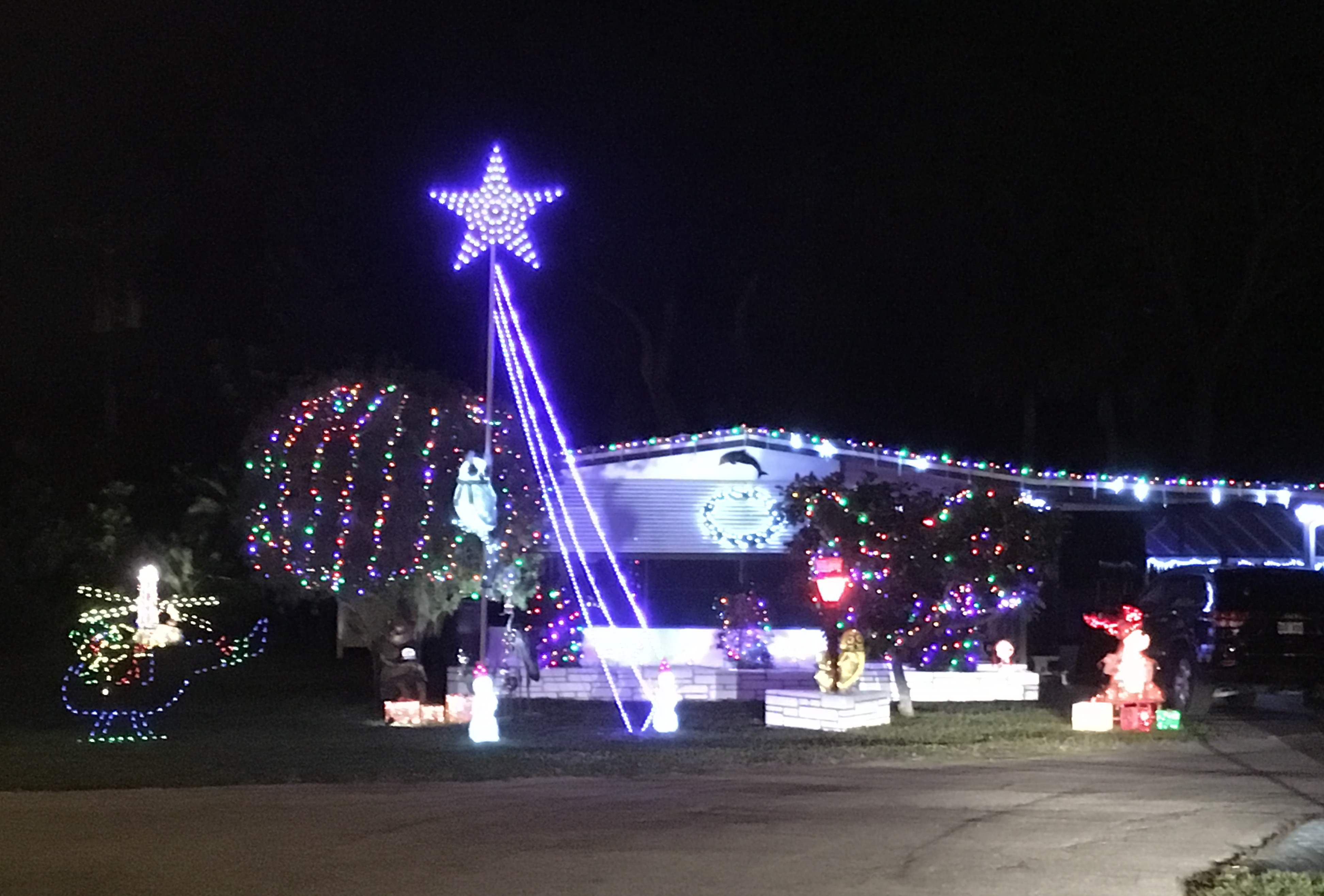 Pour le reste, c’est le temps des Fêtes qui se prépare. Et comme c’est la tradition, dimanche dernier, on a eu droit à notre parade du père Noël sur tout le complexe. Les bonbons volaient de partout et Louise en a fait bonne provision. Beaucoup de résidents et de snowbirds ont décoré leurs maisons et unités et tout le site est coloré. D’ailleurs, les photos de cet article proviennent de notre complexe.