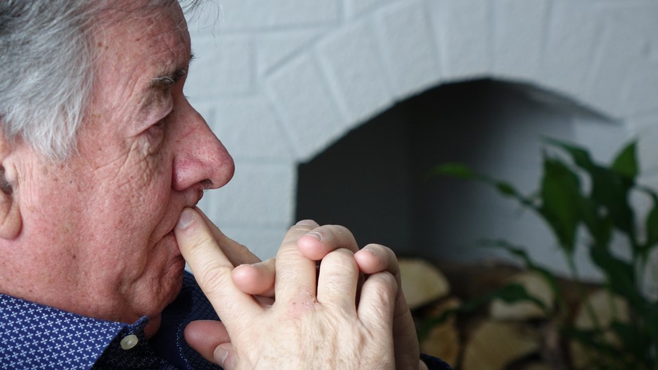 Les larmes ne sont jamais loin quand André Castonguay évoque les événements du 23 décembre 1983. Photo : Radio-Canada / Daniel Mailloux