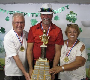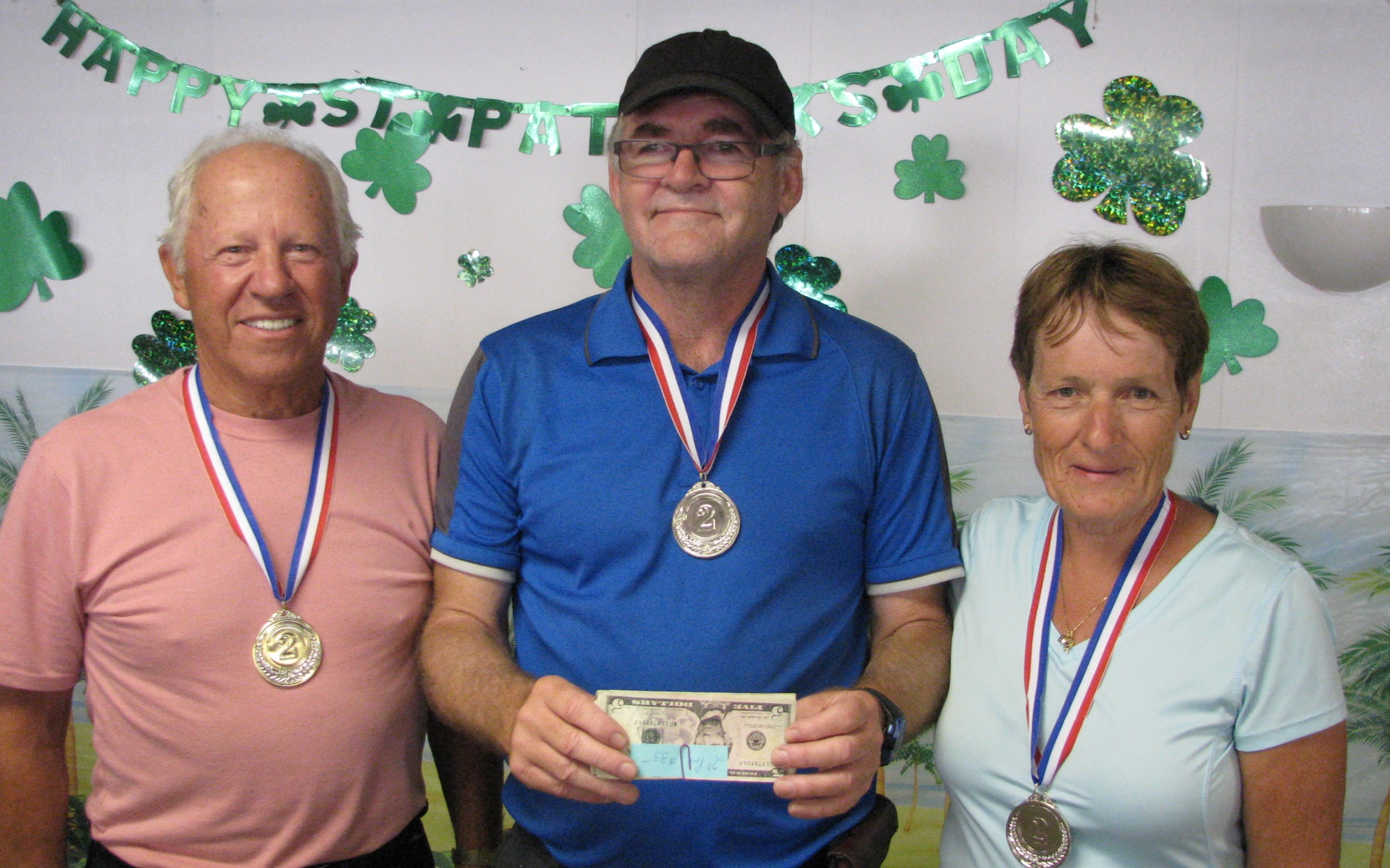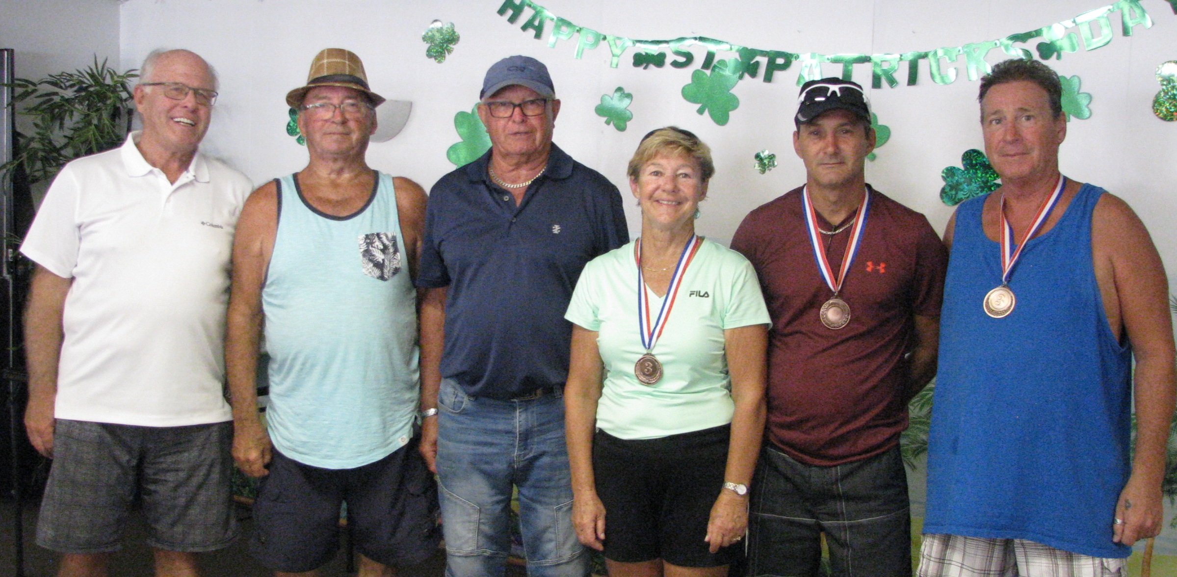 Dès lors, on récompensait les trois meilleures équipes. En troisième position, on retrouve une égalité; l’équipe de Denis Poirier, flanqué de Bob Ansaldi et Suzanne Ferland, ainsi que l’équipe du capitaine Normand Tremblay, assisté de Gaston Lehoux et Pierre Turnel, ramenaient des cartes identiques de 39-27 pour se mériter les médailles de bronze.