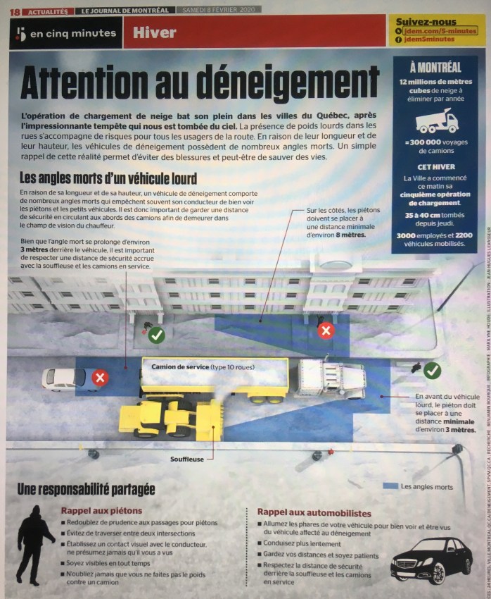 Et là, il faut maintenant déneiger. Voici donc du matériel pour vous renouveler la mémoire, surtout devant les gros camions, stationnés ici et là durant cette période très active. À suivre à la lettre, si vous voulez vivre vieux.