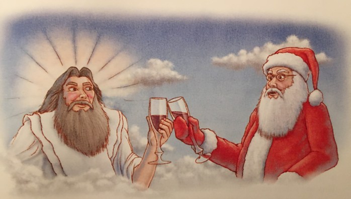 – Vous tombez mal, mon pauvre père Noël, car je suis découragé moi aussi à ce sujet. L’humanité est en train d’oublier complètement la véritable essence de la fête de Noël. Les enfants ne reconnaissent même plus la crèche, les églises sont à vendre, on retourne le vin de messe au paradis à pleines caisses. Au fait, en prendriez-vous un petit verre ? J’en ai reçu, hier, qui n’est pas piqué des vers.