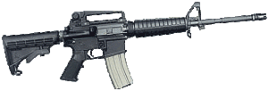 – Monsieur, venez voir notre dernier fusil d’assaut qui peut tirer 100 balles en quelques secondes. Une arme de destruction massive pour vous protéger des bandits, ou provoquer une tuerie. Vous avez 18 ans ? Alors il est à vous pour la modique somme de 500 $, et sans autre exigence. Dieu vous protège. Dites-moi jeune homme, êtes-vous sobre ?