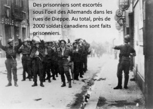 Note : Parmi les 5000 Canadiens qui participent au « raid » de Dieppe figurent 584 Canadiens français du régiment des Fusiliers Mont-Royal. Censés servir de force de réserve, ils sont très tôt envoyés dans la bataille et subiront de lourdes pertes.