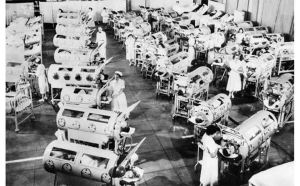 En 1927, des chercheurs de la Harvard Medical School proposent une machine pour sauver les malades dont les muscles respiratoires sont touchés. Ils créent un premier ventilateur respiratoire électrique, qu’on appellera le poumon d’acier, pour faire respirer les patients les plus affectés.