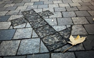 Celui-ci déplore qu’aucune plaque commémorative permanente ne souligne le contenu du sous-sol dans cette partie très fréquentée du centre-ville de Montréal. Après vérification, seules des croix stylisées insérées dans le pavé uni de briques rappellent le passé sous le square Dorchester, par ailleurs consacré au legs de l’Empire britannique.