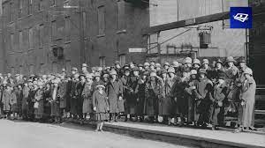 En 1918, à la demande d’ouvrières de Hull, une branche féminine de l’Association ouvrière de Hull est constituée. Elle portera le nom d’Association ouvrière catholique féminine de Hull. Plus de 300 jeunes femmes, principalement des travailleuses de la E.D. Eddy, joindront l’Association. Elles feront pression sur l’entreprise en provoquant deux conflits de travail, un en 1919 et un autre en 1924 (photo). On travaille pour gagner sa vie, non pour la perdre en travaillant… »