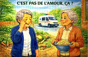 En début d’été, une écrivaine française publiera un recueil d’histoires drôles destiné à des aînés dynamiques. Pour vous mettre un peu l’eau à la bouche, et avec sa permission, voici trois histoires tirées de ce livre. Je vous en reparlerai plus en détail lorsque j’aurai reçu mon exemplaire, gracieuseté de l’autrice.