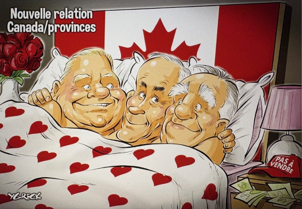 Regardant vendredi les résultats du sondage suggérant que les Québécois pour l’instant plébiscitent Mark Carney à Ottawa, je me suis demandé si les Québécois vivaient dans un sketch d’Yvon Deschamps.