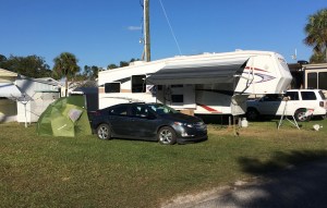 Nous sommes arrivés dans une chaleur frisant les 30°C et lentement nous nous sommes installés et surtout se familiariser avec notre caravane; se rappeler où on mettait nos choses, vider les valises, en fait, reprendre le beat de camping.