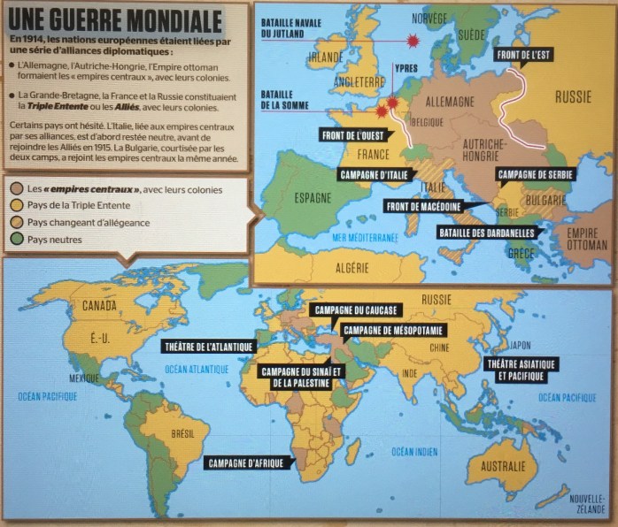 Et ce qui a commencé comme une guerre locale se transforme en conflit mondial par le jeu des alliances entre les différents pays. Le conflit finit par s’étendre sur une grande partie du globe pendant cinq ans, sur terre, dans les airs et en mer.